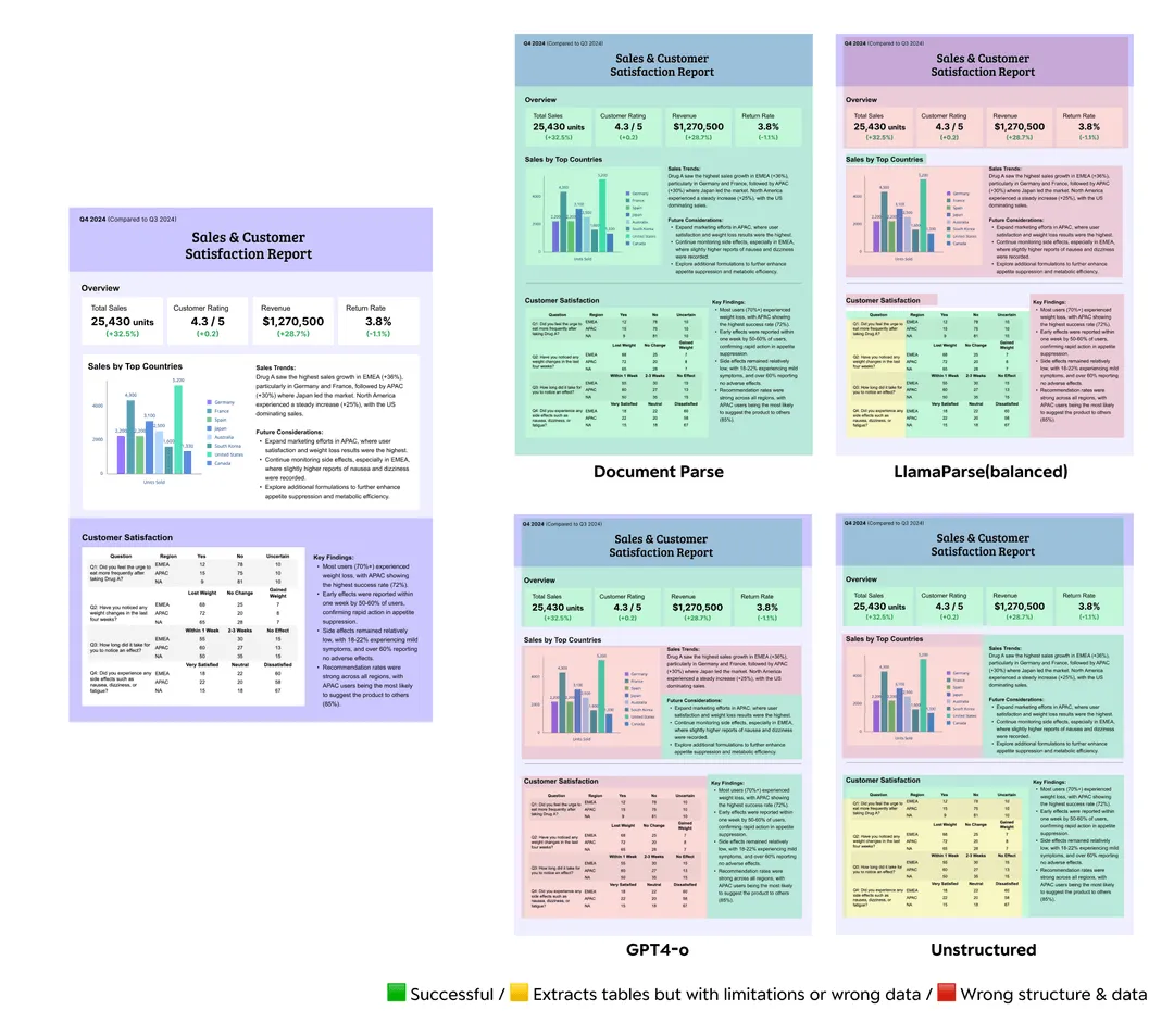 The table below compares how different products perform in extracting complex table structures.